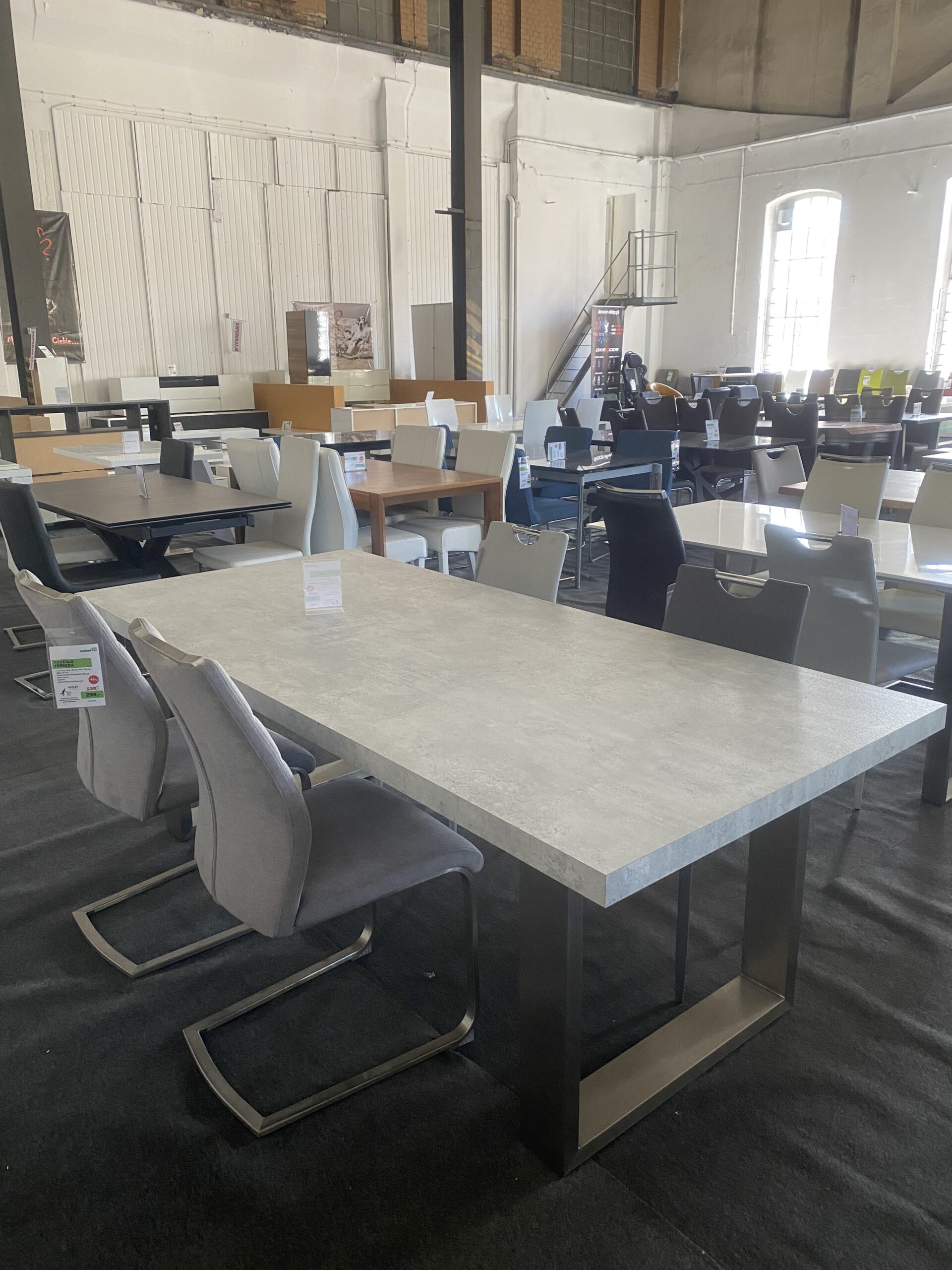 Stelaż ze stali szlachetnej szczotkowanej, blat w optyce betonu